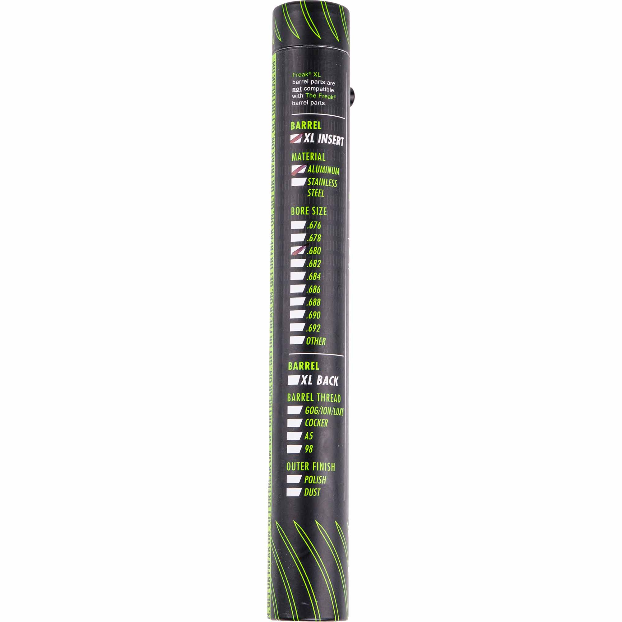 With its ability to adapt to changing paint size and quality without requiring a gear bag loaded down with barrel backs, the FREAK® barrel system set the world standard for portability, performance and flexibility. In its 8-inch (20 centimeter) XL control bore size, the FREAK® XL barrel system is even better, delivering improved efficiency and consistency.