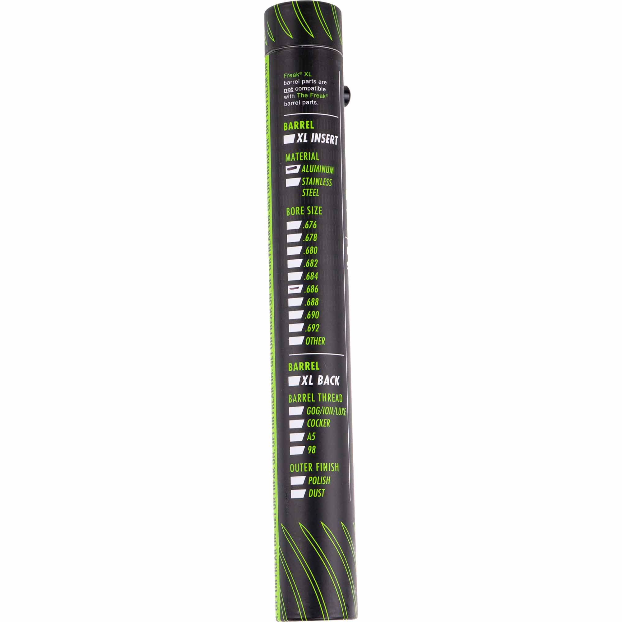 With its ability to adapt to changing paint size and quality without requiring a gear bag loaded down with barrel backs, the FREAK® barrel system set the world standard for portability, performance and flexibility. In its 8-inch (20 centimeter) XL control bore size, the FREAK® XL barrel system is even better, delivering improved efficiency and consistency.