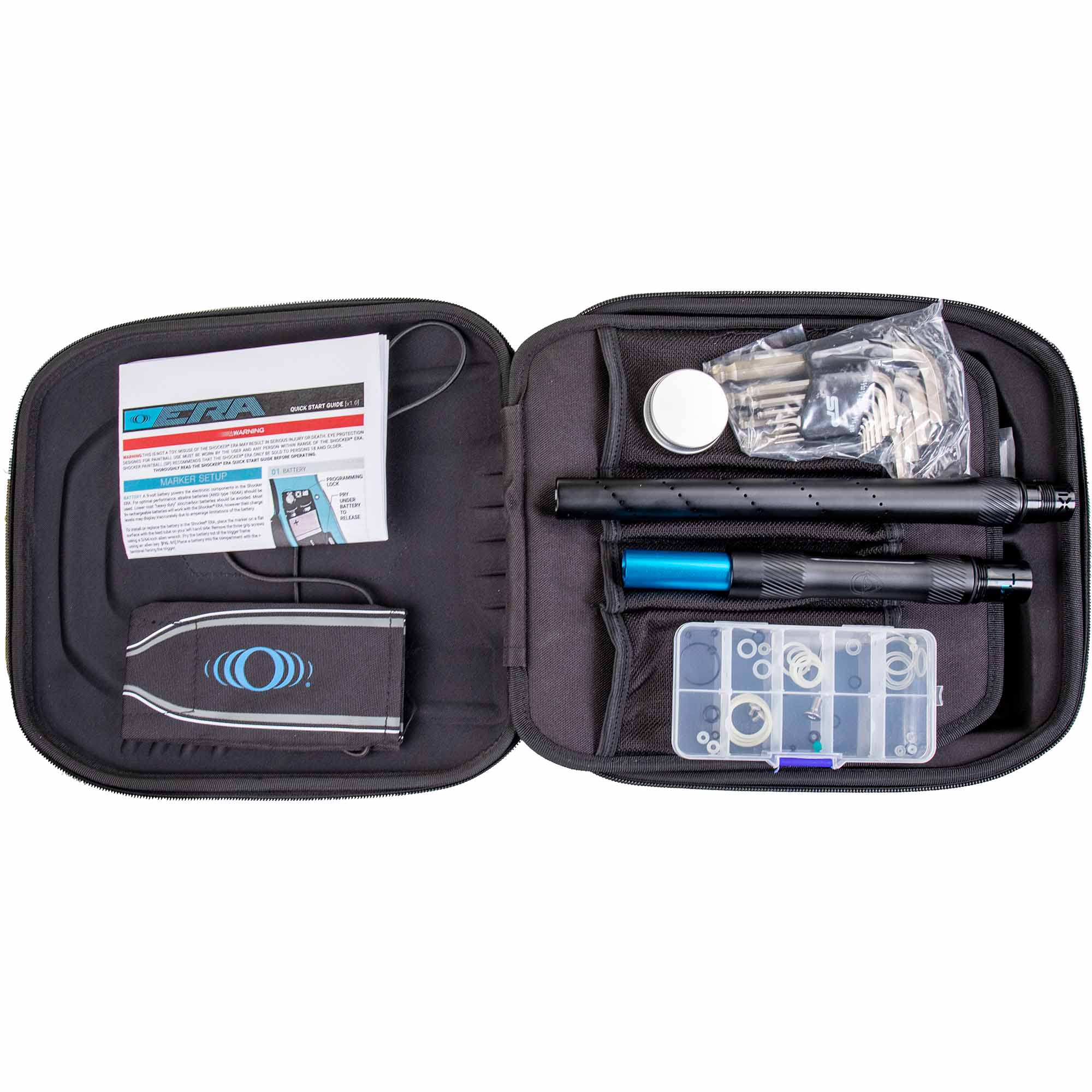 Its superior flow dynamics guarantees exceptional consistency even with quick sequences of shots. The improved trigger not only feels responsive, but also provides excellent trigger feel at standard settings. Redesigned frame-to-body and frame-to-ASA seals with double-sided O-ring pins eliminate the need for Loctite, reducing backlash issues. Since there are no sealing plugs in the housing, maintenance is streamlined, which minimizes leaks and makes disassembly easier, even if you want to completely re-anodize your marker, for example. The Shocker® ERA features improved eye cable retention, further simplifying maintenance and reducing downtime between games.