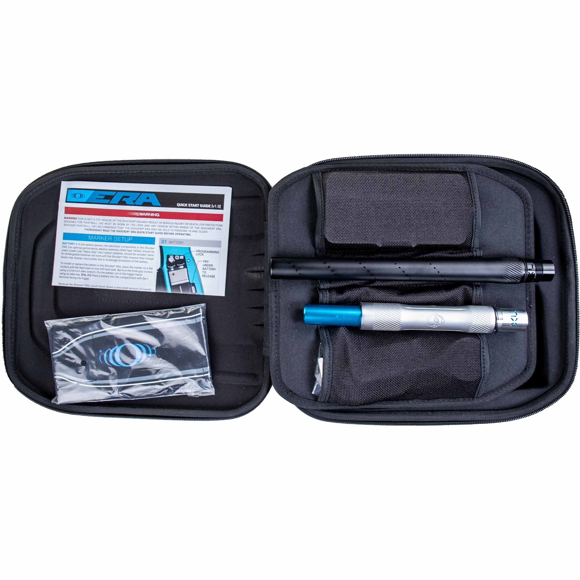 Its superior flow dynamics guarantees exceptional consistency even with quick sequences of shots. The improved trigger not only feels responsive, but also provides excellent trigger feel at standard settings. Redesigned frame-to-body and frame-to-ASA seals with double-sided O-ring pins eliminate the need for Loctite, reducing backlash issues. Since there are no sealing plugs in the housing, maintenance is streamlined, which minimizes leaks and makes disassembly easier, even if you want to completely re-anodize your marker, for example. The Shocker® ERA features improved eye cable retention, further simplifying maintenance and reducing downtime between games.